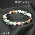 このブレスレットには三殺を鎮める力がある三匹の麒麟を用いているだけでなく、天眼水晶、翡翠、アゲート、スモーキークオーツなど、殺の影響を抑えるために相乗効果を得ることができるパワーストーンを組み合わせています。さらに、多面カット水晶は、周囲に良いパワーを広げてくれる働きがあると言われていることから、麒麟のパワーを効率良く活用できる組み合わせとなります。
