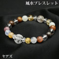 あらゆる殺気を食べ尽くし、主人を守る「ヤアズ」は、「プラチナルチル」と組み合わせることで、より力が高まり、予期せぬ金運を招いてくれるとも言われています。さらに、「ルチル」、「シトリン」といった、金運にまつわるパワーストーンや、「ストロベリークオーツ」、「サンストーン」などのツキを呼びパワーを与えてくれるストーンも組み合わせています。そして、障害を乗り越える力の「ブラックルチル」、癒やしパワーの「エレスチャル」と「ミルキークオーツ」、邪気除けの「翡翠」と、悪運を跳ね除けるためのストーンも組み合わせています。また、「多面カット水晶」は、良いパワーを、増幅してくれる働きがあり、各パワーストーンの力を効率よく活用できるとされています。