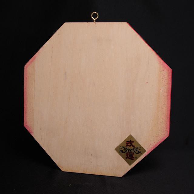 ※木目を生かせるよう、カラーニス塗りを基本に、八卦部分の黒と、周辺部分の赤がアクセントになっています。八卦部分は、彫刻刀で溝が刻まれており凝った作りとなっています。比較的丁寧な作りになっていますので、商品の状態を重要視する方におすすめです。