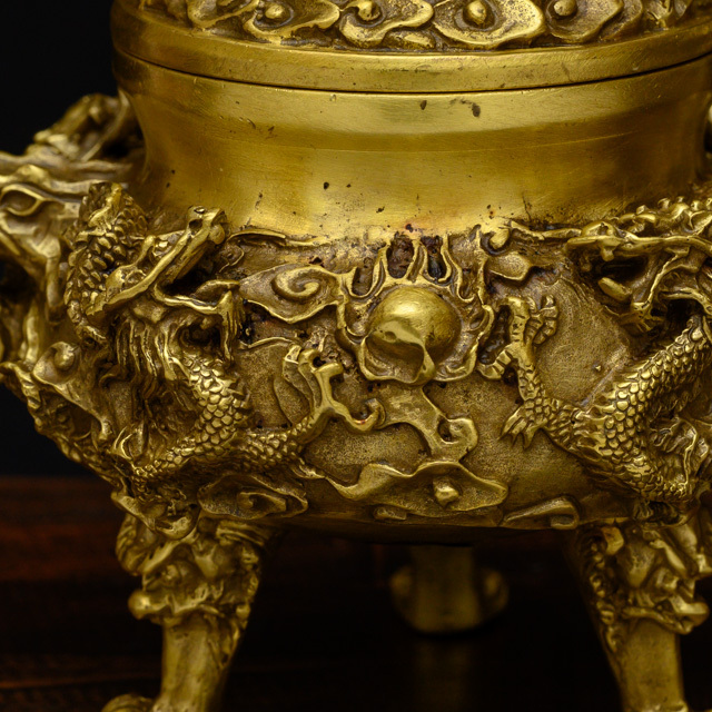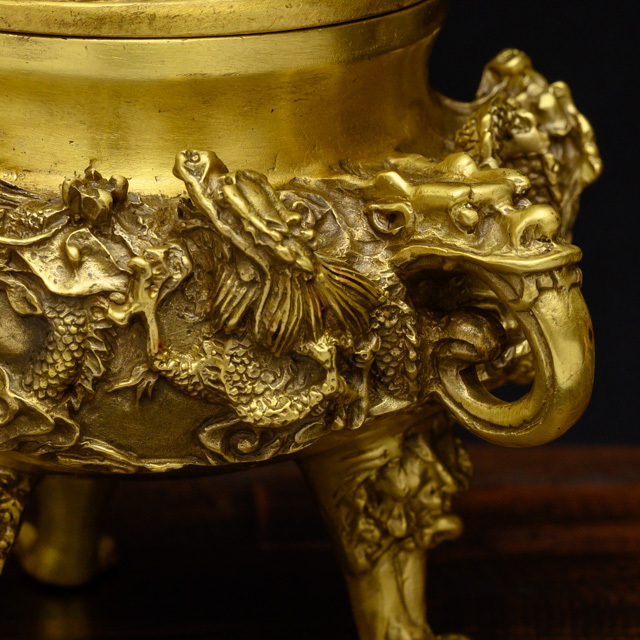 九匹の龍が配置されたデザインの風水アイテムとして意味の深い香炉です。九龍と言えば、北京の故宮に現存する九龍壁が有名ですが、風水において、「九」は最大の吉数とされており、運気上昇、招福、繁栄、避邪など、あらゆる幸せを意味する数となっています。さらに、香炉を支える三本の足には強力な風水パワーがある獅子が刻まれ、邪気を寄せ付けません。