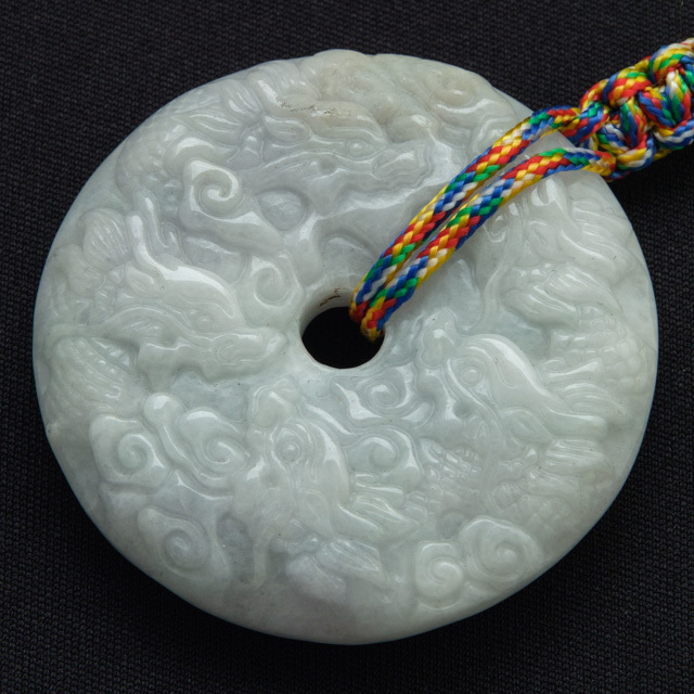 ミャンマー産の天然翡翠に九匹の龍が彫刻されているお守りです。魔除け厄除け、または、目標達成を願うなど、幅広く活用できる風水アイテムです。お守りとして携帯したり、デスクや寝室などに吊り下げたり、職場などでは引き出しやロッカーの中に入れておき、九龍のパワーを近くに感じてください。