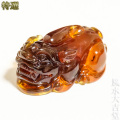 ブランデーチェリーのような色をした琥珀ですが、ブラックライト(UVライト)を照射するとブルーに発光する、珍しい琥珀を使用している貔貅の彫刻です。デスクの上や、棚の片隅など、身のそばに置いてパワーを感じてください。