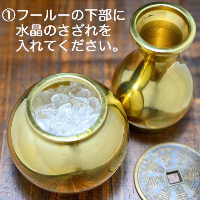 (1)「銅製のフールー」は、上下に分離する作りになっていますので、下部に「水晶のさざれ」を入れます。