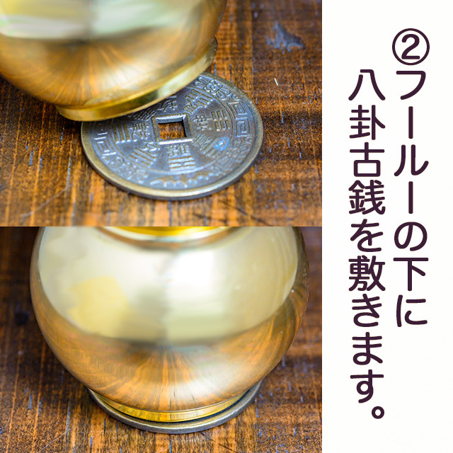(2)目的の場所に、「銅製のフールー」を置いてください。その時、「銅製のフールー」の下に「銅製 古銭型(八卦)」を敷いてください。「銅製 古銭型(八卦)」は、八卦が描かれた面を上にします。