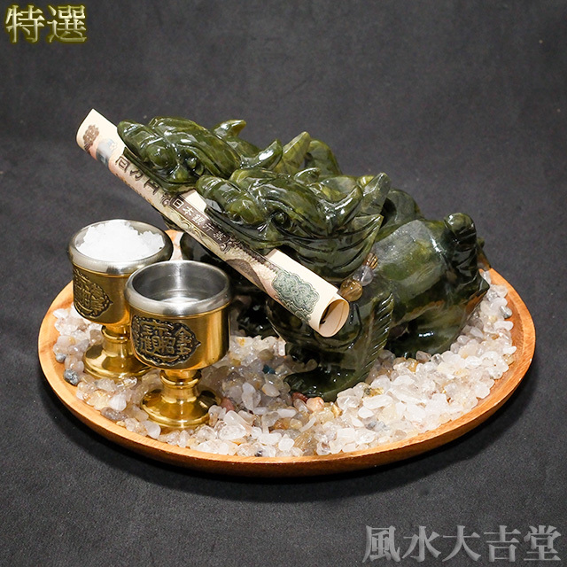 ヤアズは龍の子とされ、新鮮な水を好み、持ち主や財を守るために邪気と戦う性質を持ちます。粗塩を供えることで、その力を清め、より良い状態を保つことができます。