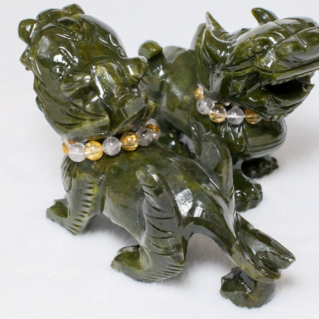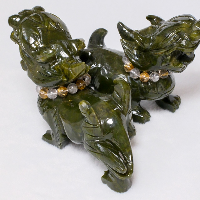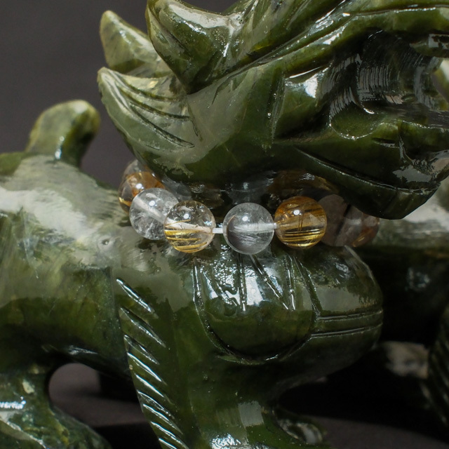 上質なルチルネックレスをまとった、グリーンジェイドのヤアズペアが入荷しました。「お水」と「粗塩」を入れて備えるための銅製水盃、ディスプレイに使えるトレーも付属しています。