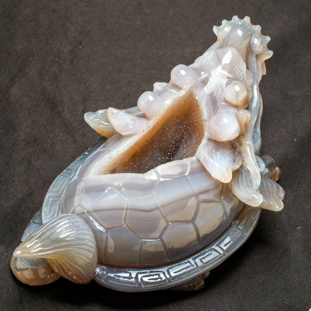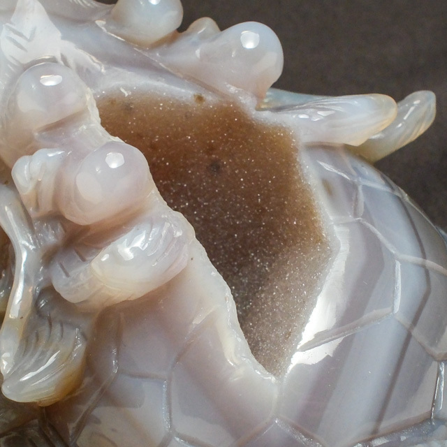 メノウの空洞部分が龍亀の背中にあたる構造になっている点です。