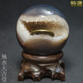 原石の中心部分が見えるよう、球状に研磨した置物です。結晶が見える開口部が、笑っている口のように見えることから、福や財を呼び込む力があるとされています。