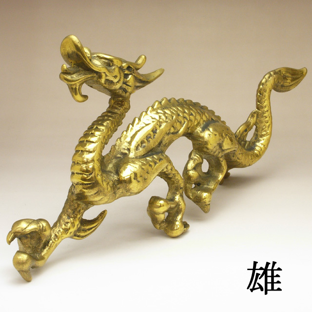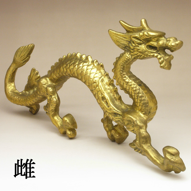 【改運】公&母の龍 一対(銅製)(風水の龍、龍の置物)【送料無料】(f50053)